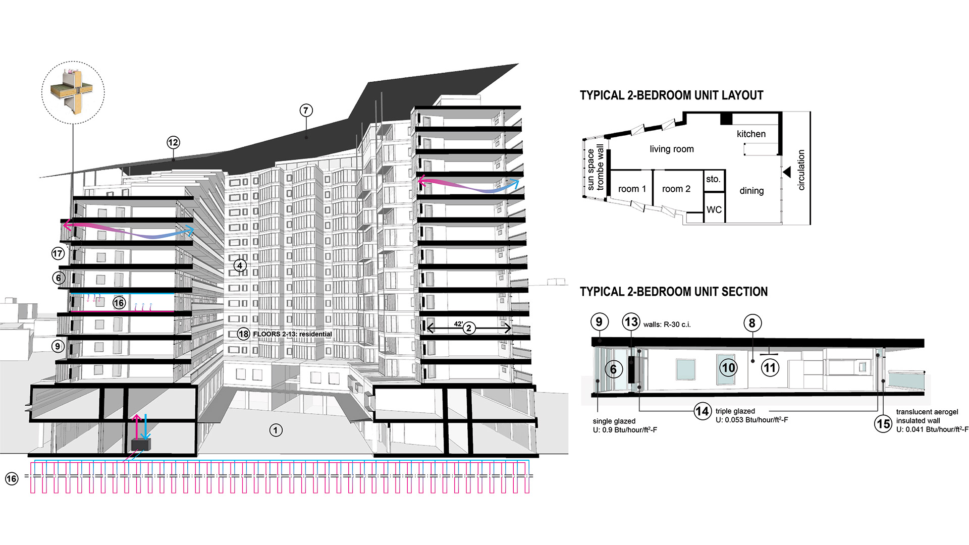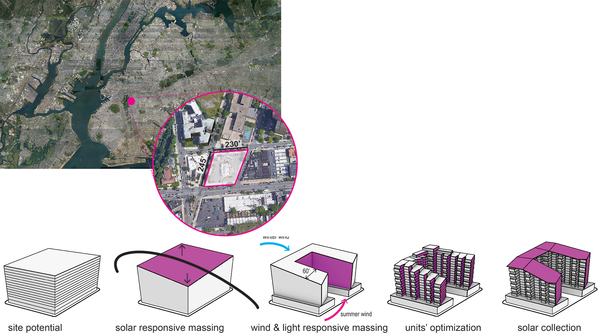 A 300,000 sf, 15-story mixed-use building in New York City contains retail space, residential space, and a full-service restaurant. The design team followed a tiered design process, initially informed by a parametric design single-space study and later developed using a higher-quality, hands-on iteration process for architectural, envelope and systems design. Given the increasing complexity of the project, a combination of analysis tools was used. All decisions were based on environmental performance analysis at every step.