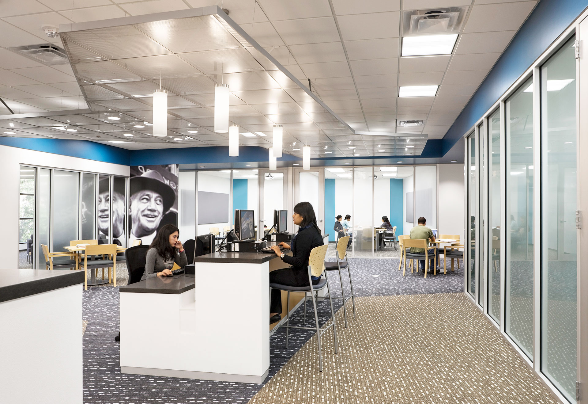 Located on the second floor of Hilton College, this 8,400-square-foot facility offers a welcoming environment for study and collaboration. Features include: