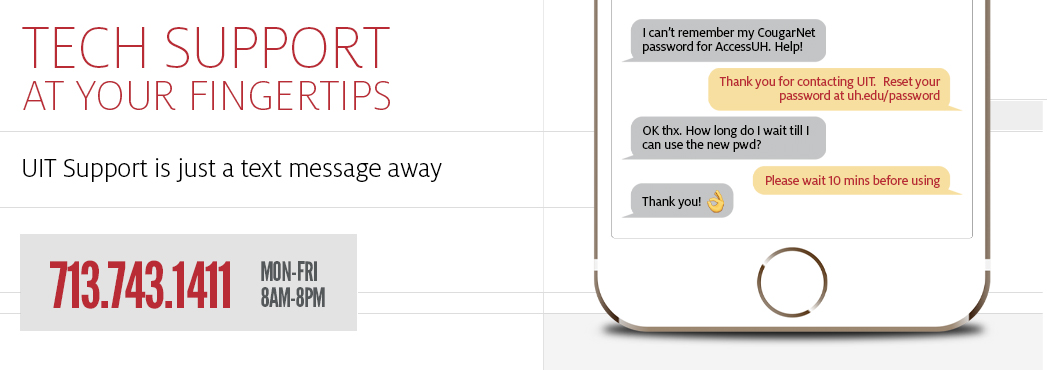 If you don’t have the time or patience to make the call, you can now send a text to the Help Desk at 713-743-1411: