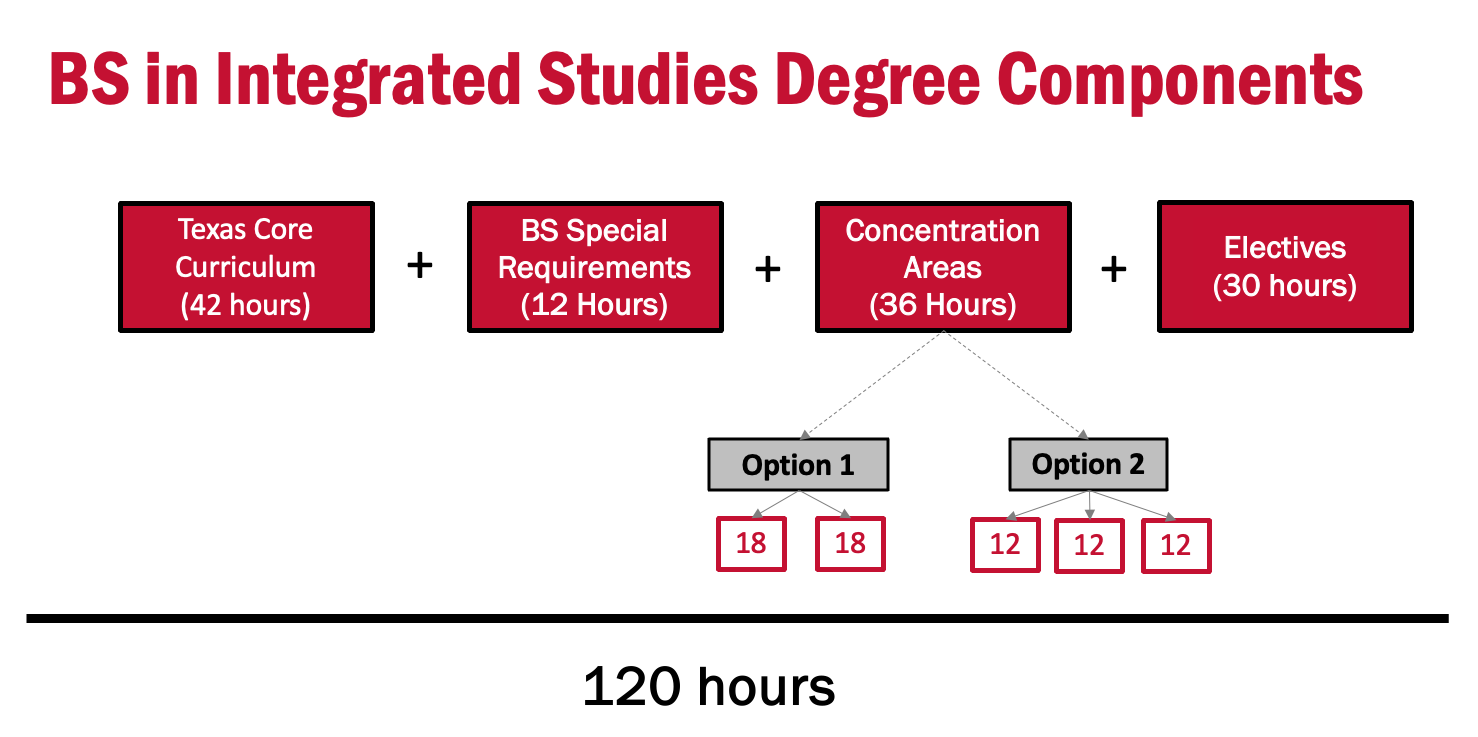- Major/Concentration Area coursework: 36 hours (see details below)